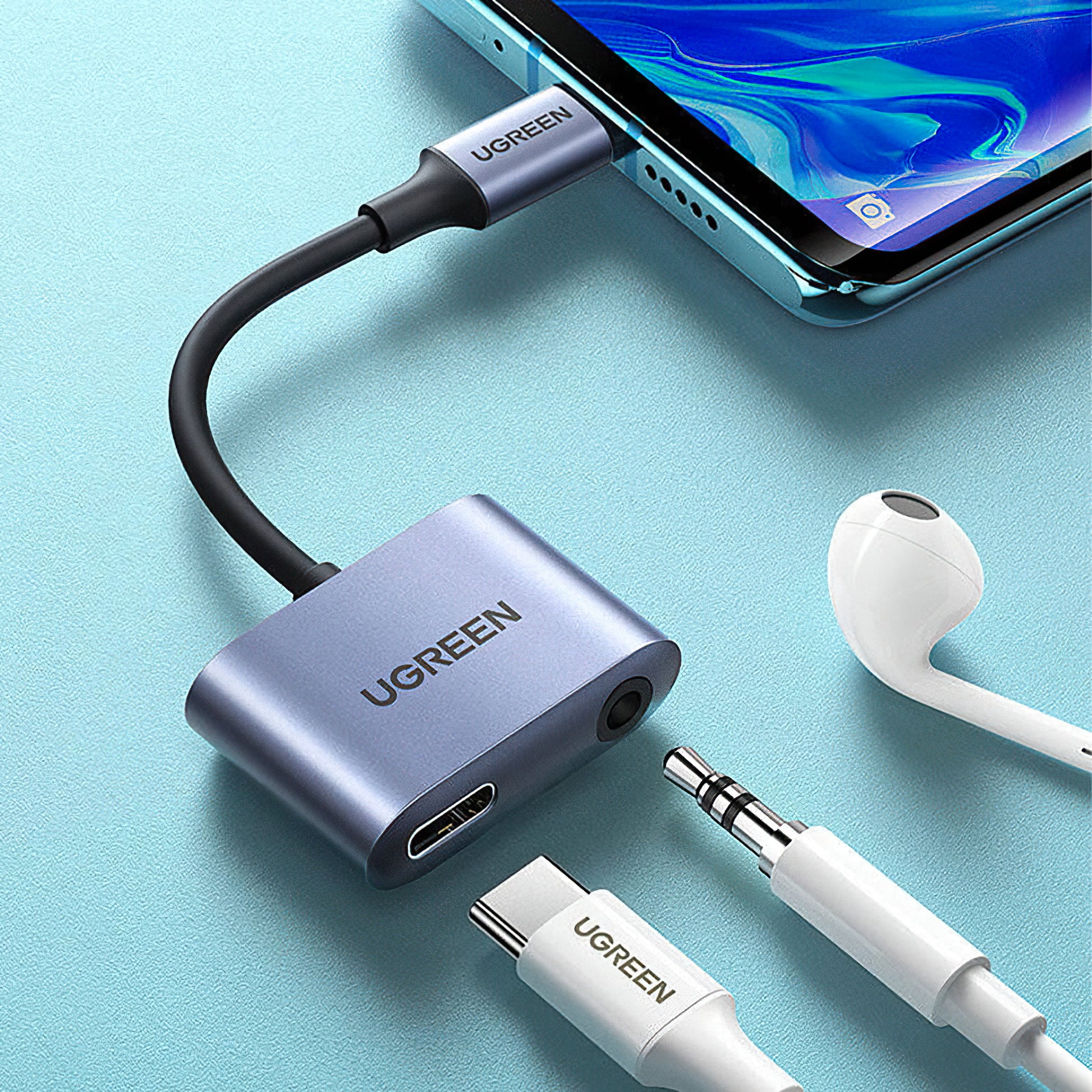 Audio adapter USB-C na 3.5mm / USB-C UGREEN CM231 omogućuje ti slušanje glazbe i punjenje telefona istovremeno.