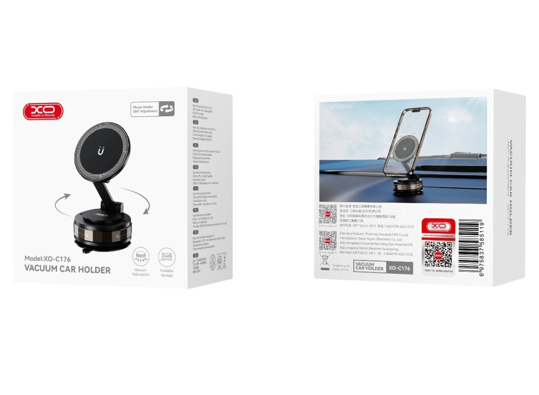 XO Design C176 je magnetski auto nosač s inovativnim vakuumskim pričvršćivanjem, dizajniran za udobnu i stabilnu upotrebu u automobilu,
