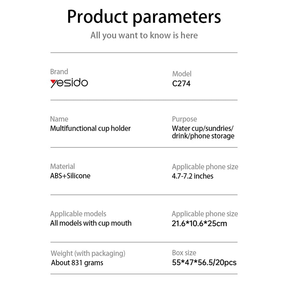 Yesido C274 je multifunkcionalni auto nosač 4-u-1, dizajniran za vozače koji žele red, stabilnost i maksimalnu funkcionalnost u kabini.