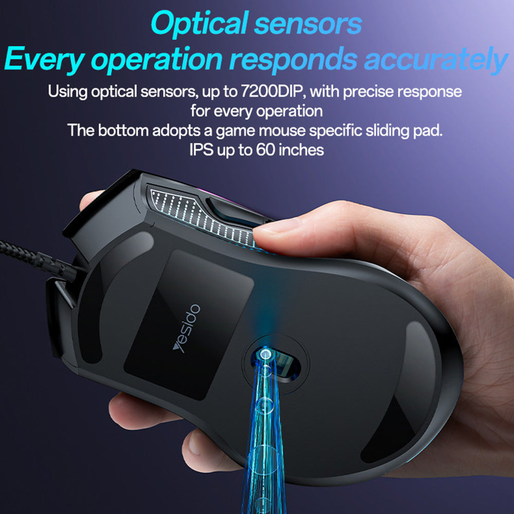 Žičani miš od Yesido idealan je izbor za igrače koji cijene i preciznost i udobnost. Zahvaljujući ergonomskom dizajnu, možete ga koristiti dugotrajno, izbjegavajući umor ili napetost ruke.