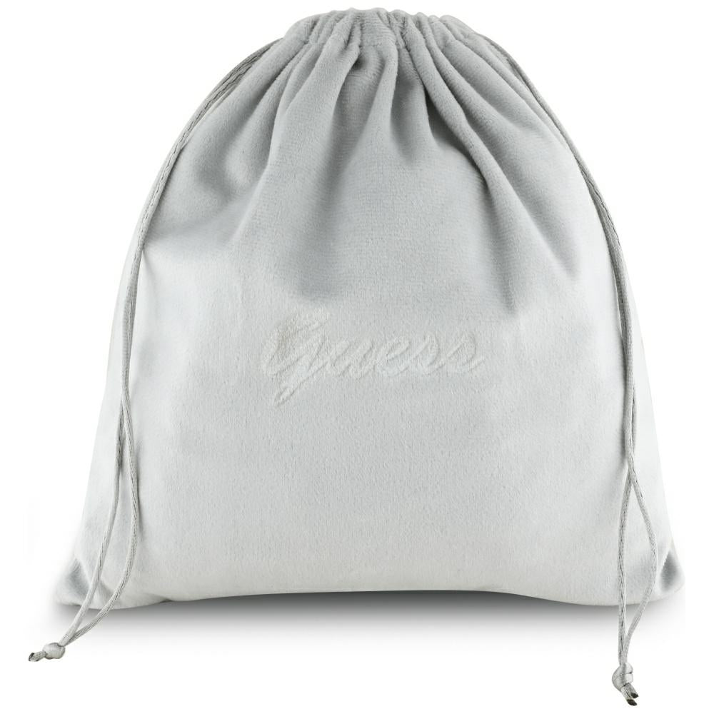 Prostrana školjka obuhvaća uho, a tekstilni prolaz namjerno kontrastira s metalnim umetcima koji predstavljaju potpis GUESS.