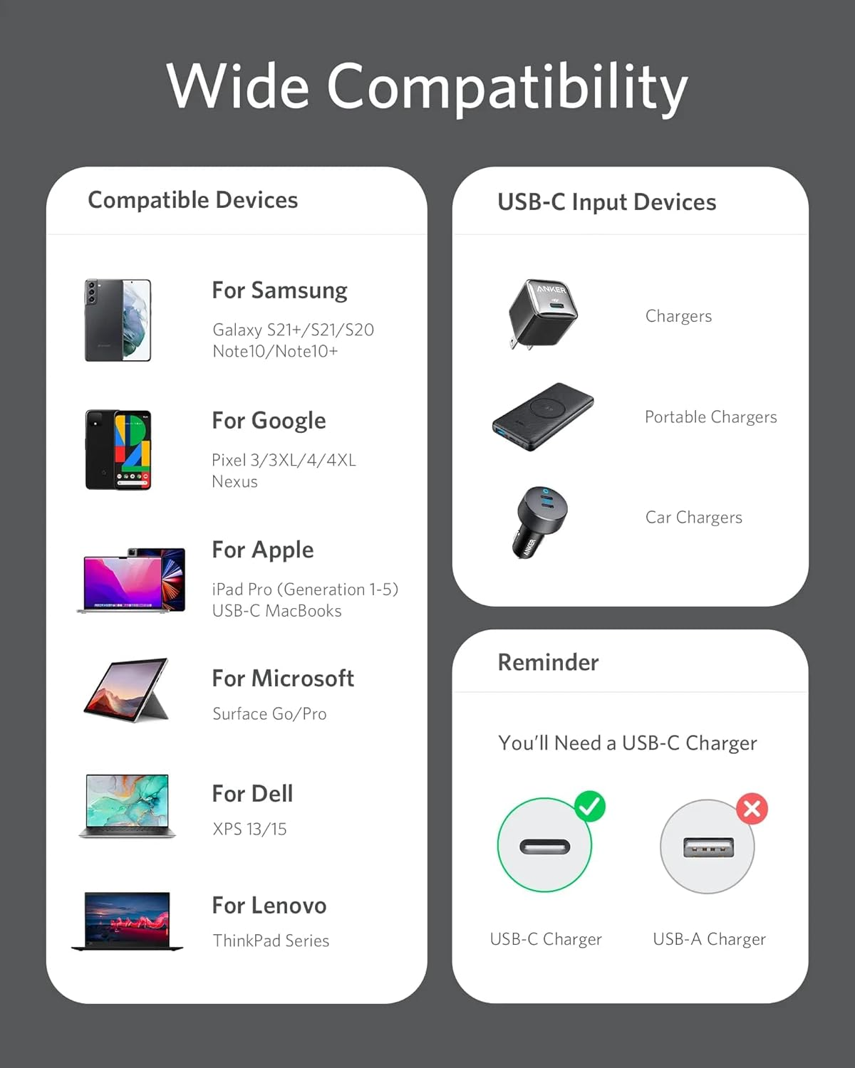 100W, kabel Anker PowerLine III kompatibilan je s širokim spektrom USB-C uređaja, uključujući pametne telefone, tablete i