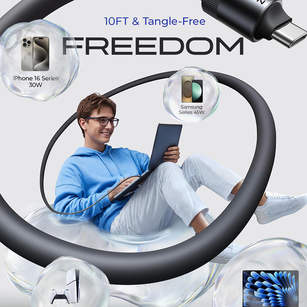 Izrađen od premium prehrambenog silikona, kabel nudi superiornu fleksibilnost i ugodan osjećaj na dodir. Osim toga, pojačana struktura produljuje vijek trajanja na više od 50.000 savijanja.