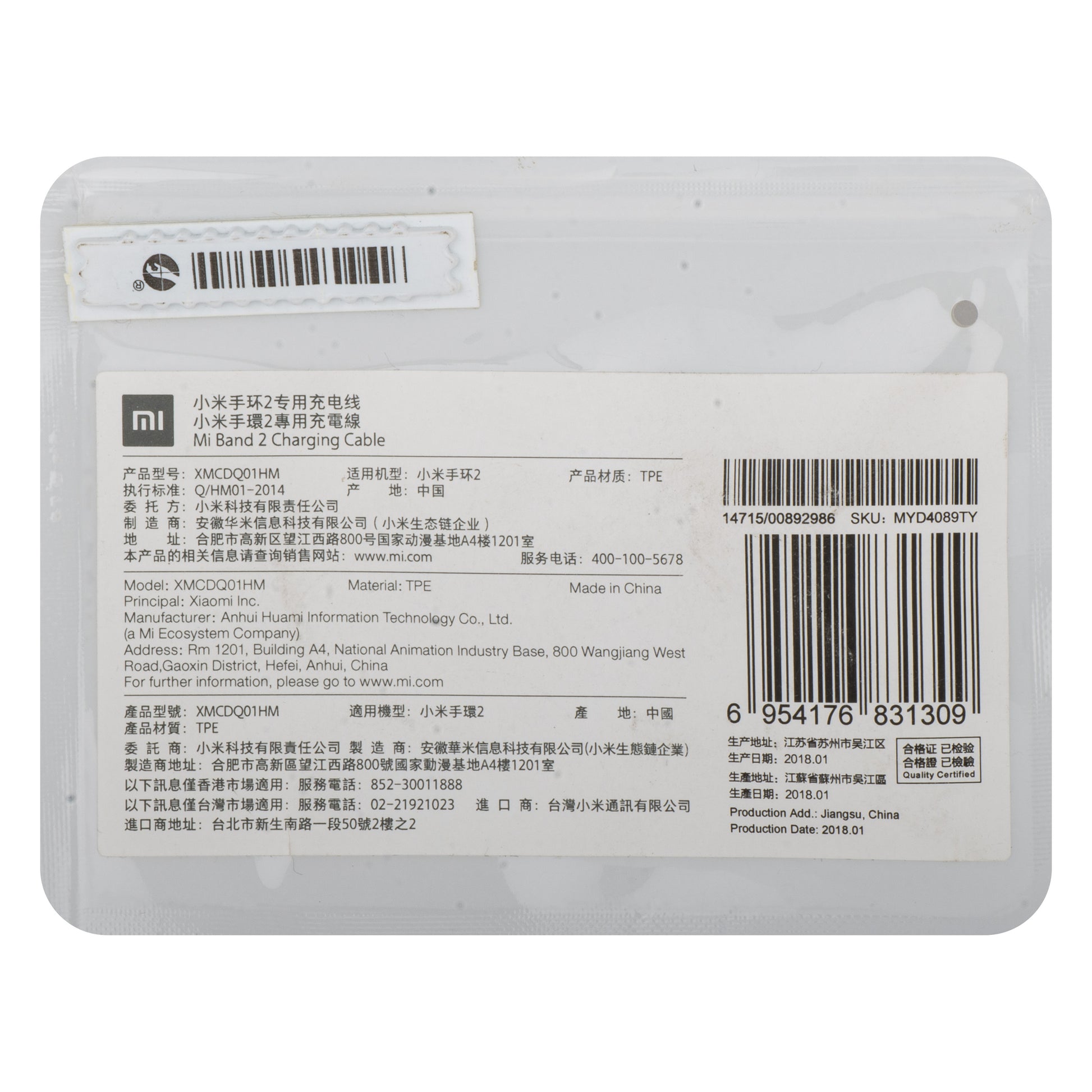 Kabel za punjenje za Xiaomi Mi Band 2, USB-A, Crni MYD4089TY