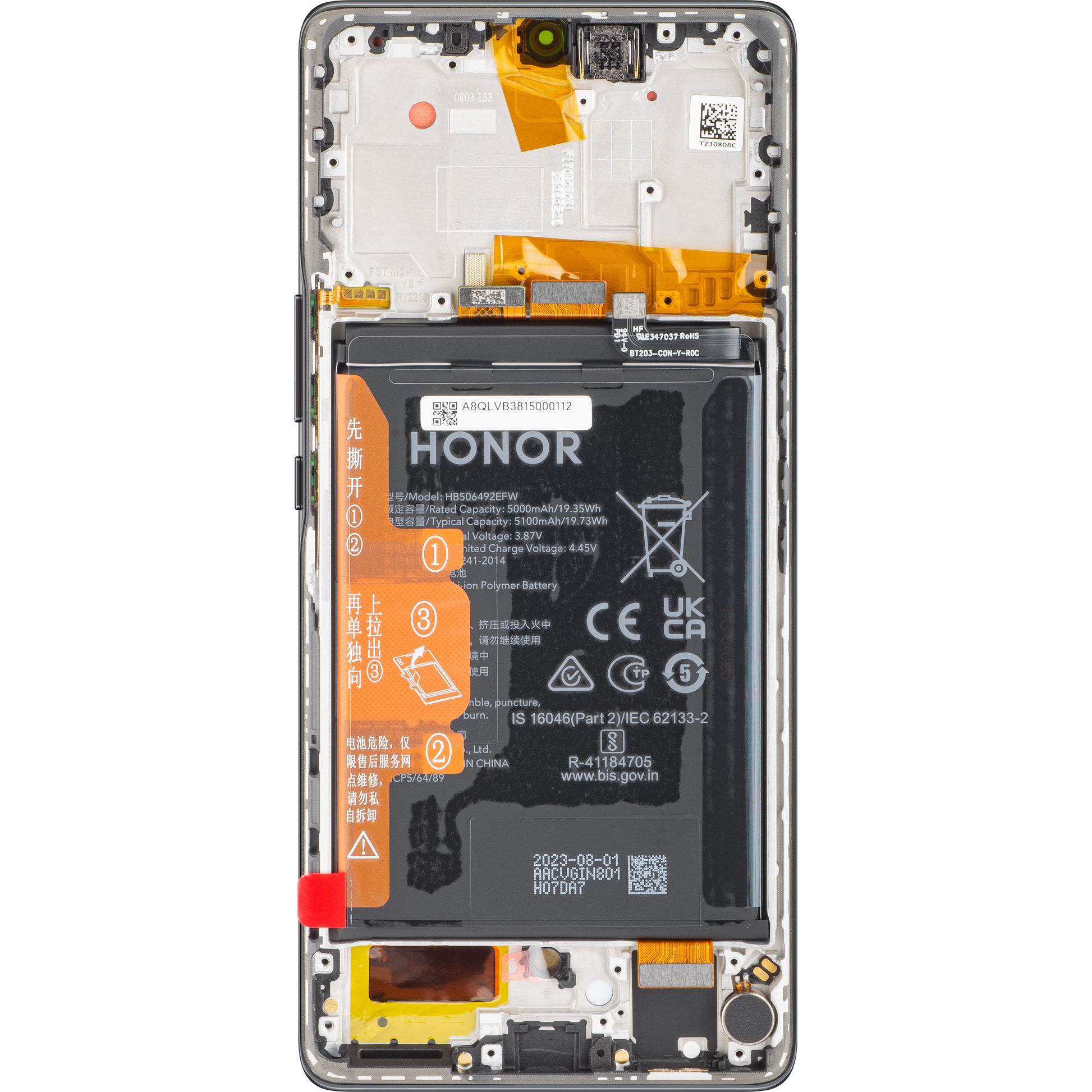 Zaslon s dodirnim ekranom Honor Magic5 Lite, s okvirom i baterijom, crni (Midnight Black), servisni paket 0235AEMW