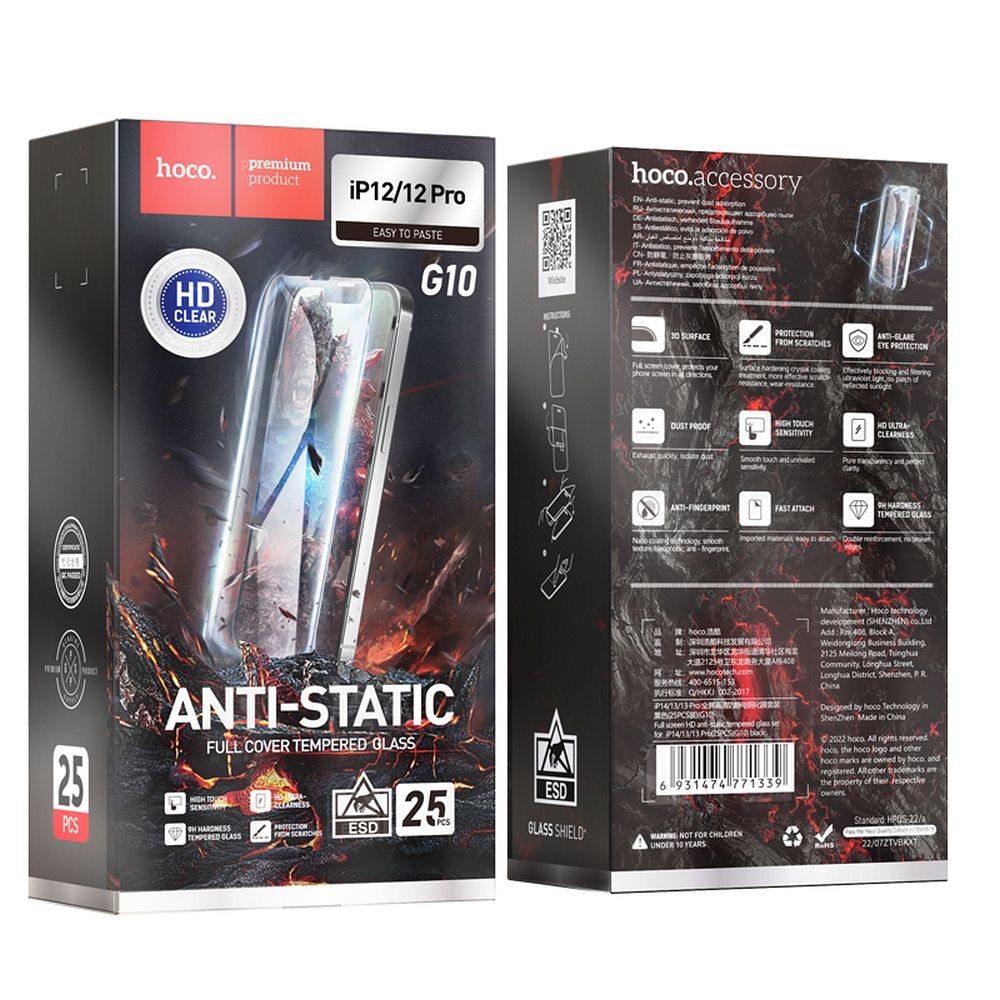 Zaštitna folija za ekran HOCO za Apple iPhone 12 Pro Max, Kaljeno staklo, Full Glue, Set 25 komada, Crna